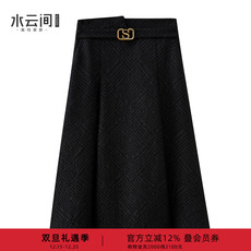 水云间黑色a字大摆高腰半身裙女中长款伞裙子高智精英风2025夏款
