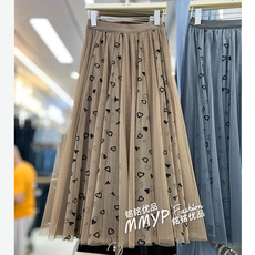 印花百褶网纱半身裙629L79496松紧高腰显瘦时尚A字大摆中长裙子夏