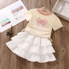 女童短裙儿童蛋糕裙防走光夏季蝴蝶结半身裙女孩蓬蓬裙洋气A字裙