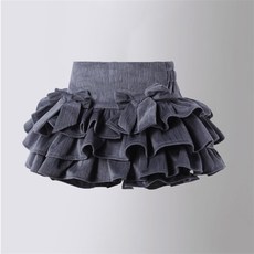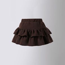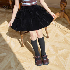 灯芯绒短裙女童秋冬新款松紧高腰a字百褶半身裙荷叶边蓬蓬蛋糕裙9