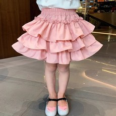 女童半身裙夏季新款洋气纯色蓬蓬蛋糕裙公主裙时髦学生防走光短裙