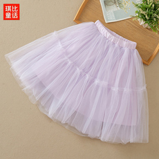 女童半身裙网纱裙新款短裙夏季洋气百褶裙中大童中长款蓬蓬裙时尚
