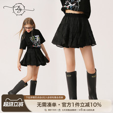 2025夏季女童新款防走光半身蓬蓬裙松紧腰短裙高腰黑色伞裙大摆裙