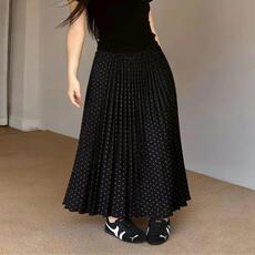 毛丽小四郎【黑糖波波】复古波点百褶半身裙女黑色A字裙高腰显瘦