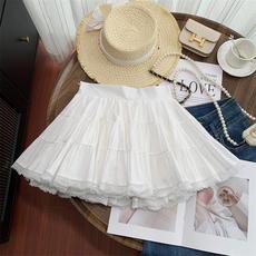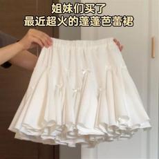 新款夏芭蕾风白色蓬蓬裙半身裙女装小个子短裙甜美裙子A字蛋糕裙
