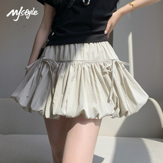 MJ STYLE夏季甜美A字短裙花苞裙设计感蝴蝶结蓬蓬裙白色半身裙女