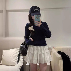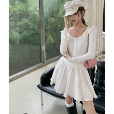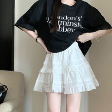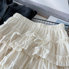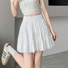法式甜美白色蛋糕裙木耳边半身裙女高腰显瘦芭蕾风a字短裙蓬蓬裙