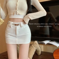 时尚显瘦韩系女潮辣妹半身裙A字白色2025短裙夏季防走光高腰新款