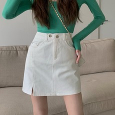 白色牛仔半身裙女夏季2024新款高腰a字小个子梨型身材搭配短裙子