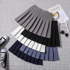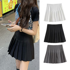 【清仓】乐町纯色学院风半裙夏半身裙女装元气白色A字百褶短裙