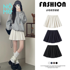 NOME(服饰)白色百褶裙女 a字显瘦小个子高腰毛呢包臀jk半身短裙