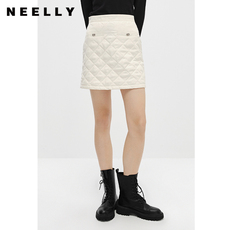 NEELLY纳俪商场同款冬季高腰半身裙女菱格显瘦百搭A字裙白色短裙