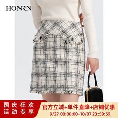 HONRN/红人气质黑白色短裙子小香风显瘦a字半身裙女春秋HH33OQ478
