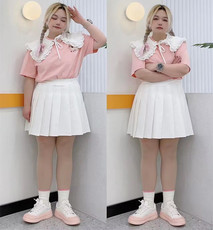 白色百褶裙女半身裙夏大码高腰显瘦学院风a字裙胖mm刺绣褶皱短裙