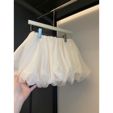 MJ STYLE花苞半身裙女夏2025新款高腰小个子a字白色蓬蓬蛋糕短裙