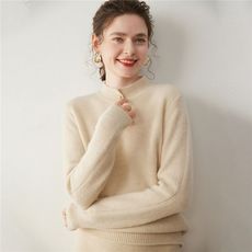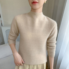 初剪BABY山羊绒衫女士半高领纯色套头毛衣亲肤柔软针织羊毛打底衫