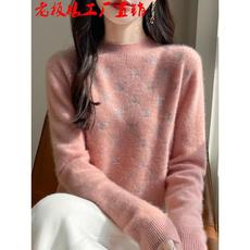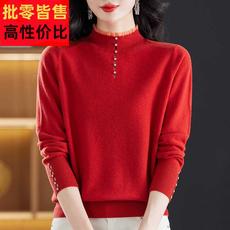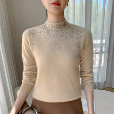 新款100%纯羊绒衫女半高领毛衣秋冬镶钻洋气妈妈装内搭打底羊毛衫