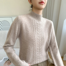 加厚半高领羊绒衫女套头秋冬新款100%纯山羊绒针织毛衣绞花打底衫