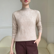 半高领羊绒衫女100%纯山羊绒衫套头毛衣内搭宽松保暖一线成衣无缝