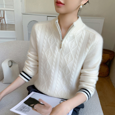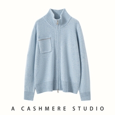 2025秋冬新款山羊绒衫女半高领拉链毛衣针织开衫外套宽松显瘦