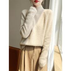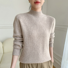 重磅亲肤山羊绒衫女半高领宽松软糯针织打底衫套头无扎感上衣毛衣