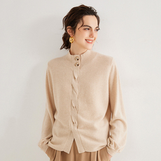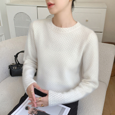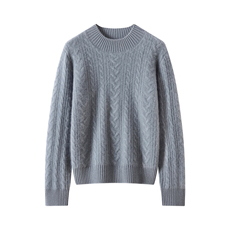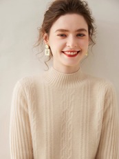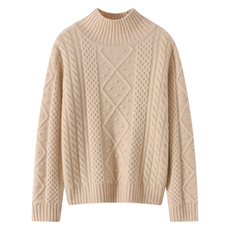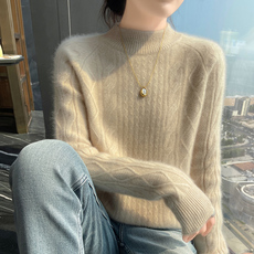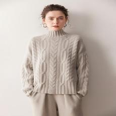 兆君秋冬新款半高领长袖羊绒衫女绞花宽松加厚保暖针织毛衣