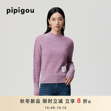 皮皮狗25秋冬新品女士半高领羊绒套衫手钉织标合体版肩部装饰线迹