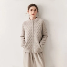 秋冬新款山羊绒衫女式半高领开衫肌理感棉服针织毛衣减龄拉链外套