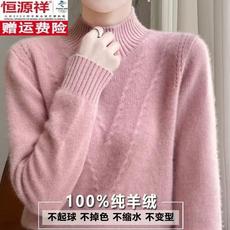 恒源祥集团彩羊秋冬加厚宽松羊绒打底衫半高领减龄显瘦新款内搭女