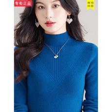 恒源祥彩羊纯羊毛衫女秋冬半高领弹力衫毛衣修身显瘦羊绒打底衫
