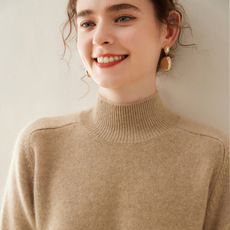 一线成衣云朵山羊绒衫女卷边半高领套头内搭针织衫无缝打底毛衣