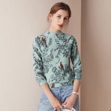 浙江桐乡高端嘉兴濮院羊绒衫冬季半高领勾花镂空设计长袖针织毛衣