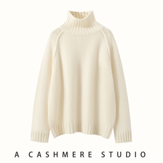 版型狂赞有魅力~加厚羊绒衫女100纯山羊绒半高领宽松纯羊绒毛衣
