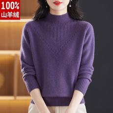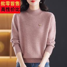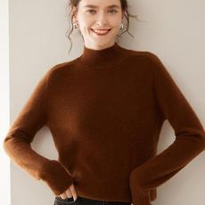秋冬100%纯羊绒衫女半高领针织衫宽松加厚毛衣打底衫套头百搭上衣