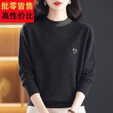 半高领毛衣100%纯羊绒衫女秋冬新款时尚镶钻宽松减龄妈妈装打底衫