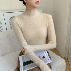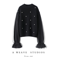 浪漫璀璨星空!水钻珍珠蓬蓬网纱加厚山羊绒衫女半高领纯羊绒毛衣