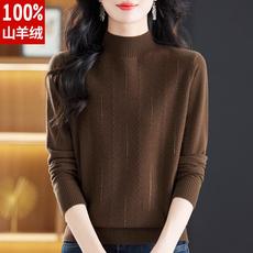 2025新款山羊绒衫女半高领加厚毛衣秋冬新款宽松内搭羊绒针织打底