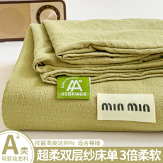 超柔双层纱纯色床单单件非全棉纯棉单双人被单夏季学生枕套三件套