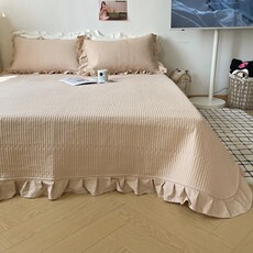 新款纯色床盖单件四季通用榻榻米床单三件套夹棉衔缝防滑加厚炕盖