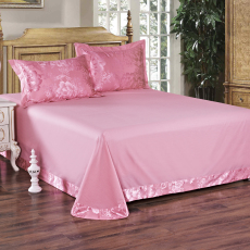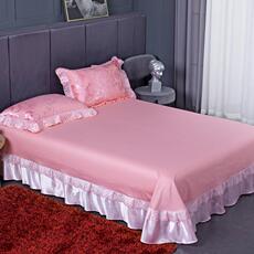 蕾丝韩版纯棉婚庆床单单件 全棉花边公主纯色床罩被单绸缎边定制