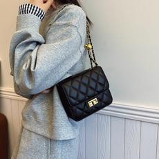 小包包女流行新款潮时尚链条菱格单肩斜挎网红简约手提小方包