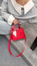 菱格手提包2025新款女包潮流字母配丝巾高级感单肩斜挎包小包包潮