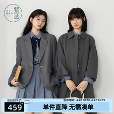 极简风廓形单排扣西装外套女春秋高级感灰色宽松显示西服职场通勤