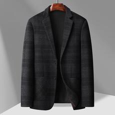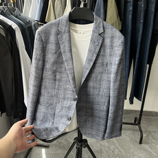 外贸撤标男士秋季新款时尚休闲商务简洁格纹柔软舒适男款单西外套