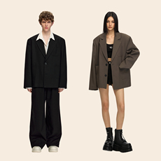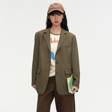 【储格】双排扣拼色宽松休闲西服男斜纹肌理宽肩单西外套帅气西装