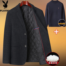 爸爸秋冬装外套夹棉加厚中老年人西服男爷爷呢子毛呢单西西装上衣