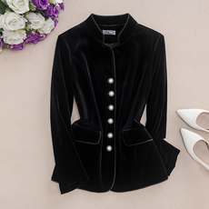 新中式国风复古小立领西服男春秋单排扣外套商务痞帅黑色中山装潮