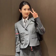 TB TUMA西装羊毛英伦风修身九分袖单排扣女士小西服短裙套装外套