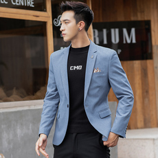 西装男青年韩版帅气修身天蓝色单西休闲外套春小西装男士西服潮流