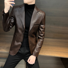 高级感修身皮衣小西装外套男士潮流商务痞帅气休闲单西服高端上衣